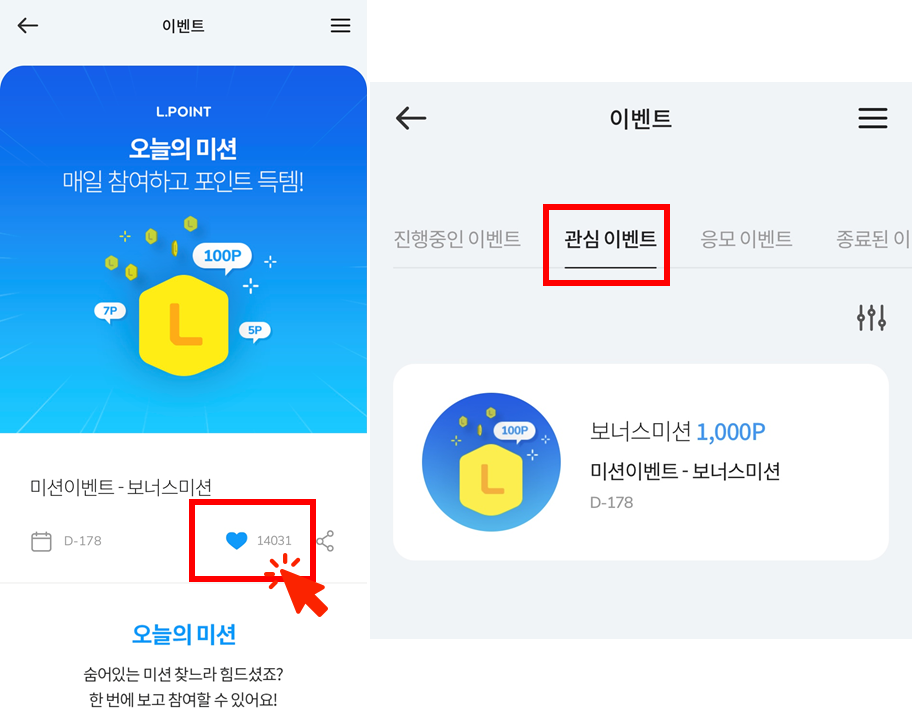 -빠른 미션 참가를 위해 미션페이지에서 하트 눌러주면
