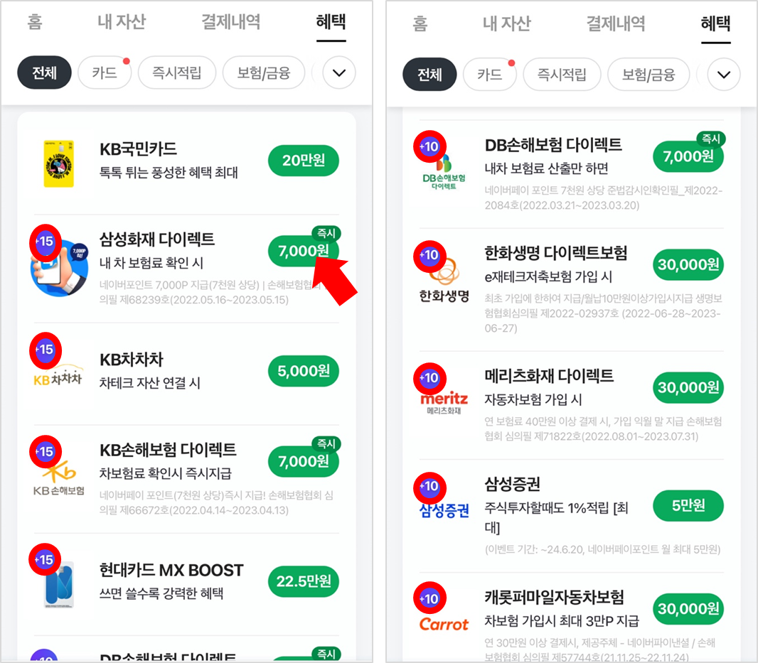 혜택마다 +10, +15 적혀있는 것들 눌러주면
