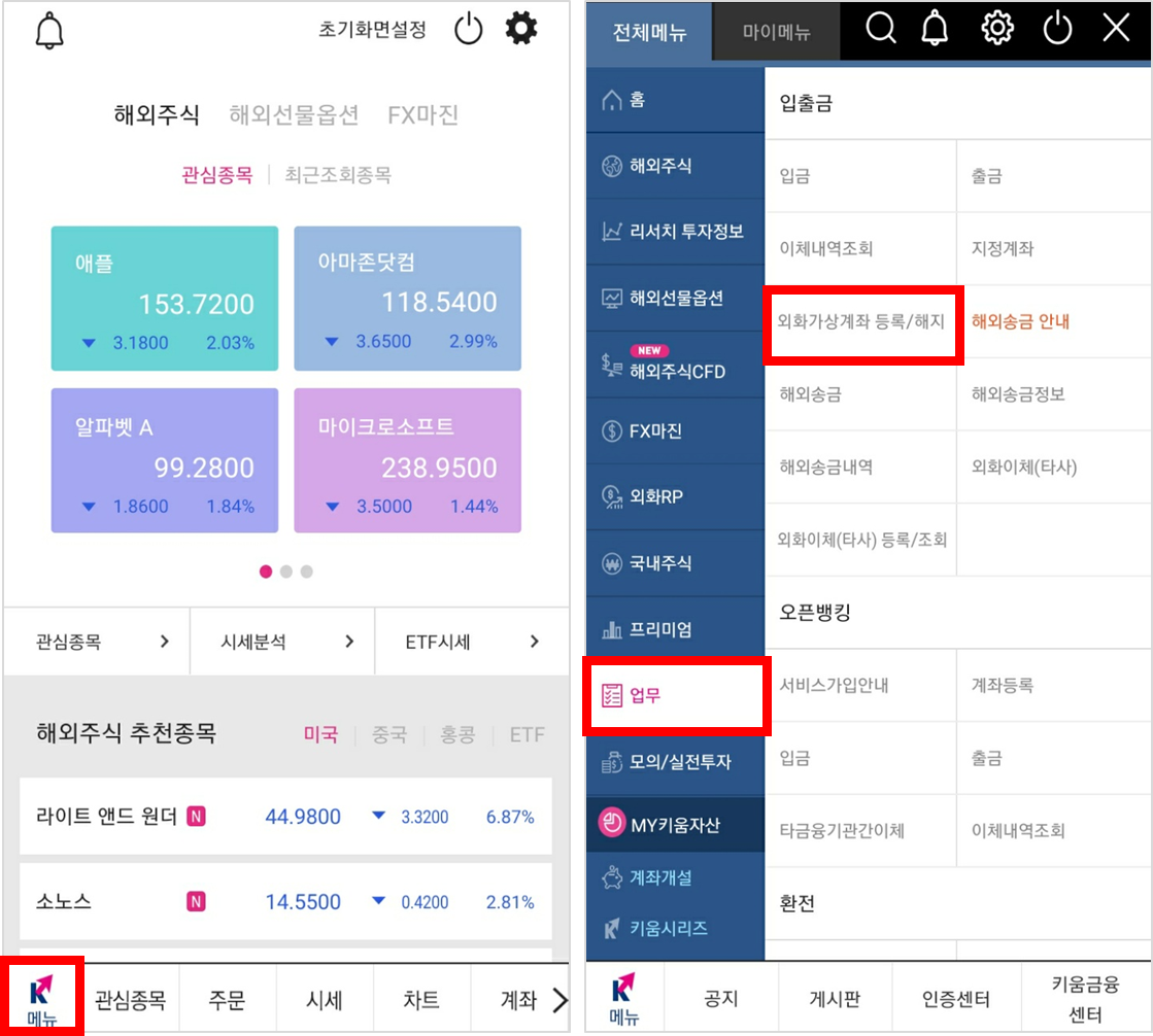 오늘은 키움증권 어플에서 외화가상계좌인 국민은행 가상계좌 등록하는 방법 알려드릴게요.