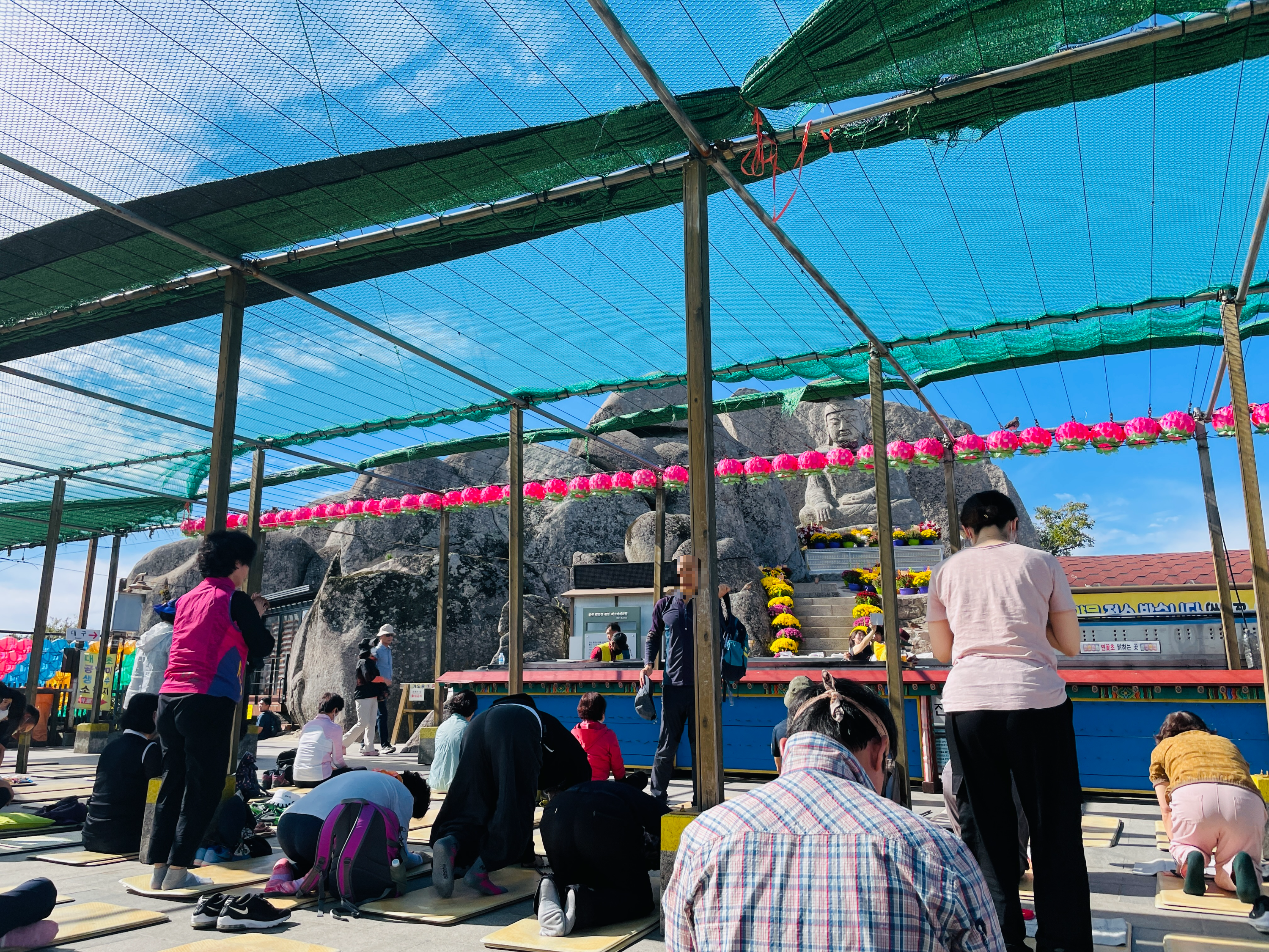 '관음휴게소'에서 내려 양초 사서 입구까지 가는 셔틀버스 타고 정상까지 갔다가 다시 셔틀버스타고 내려온답니다.
