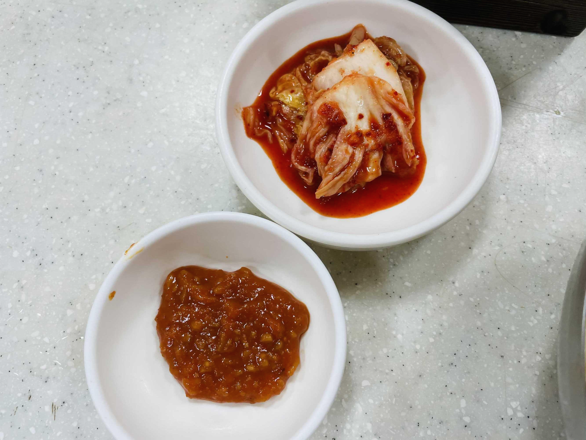 자리에 앉으면 김치랑 쌈장, 물은 셀프로 가져오면 돼요.