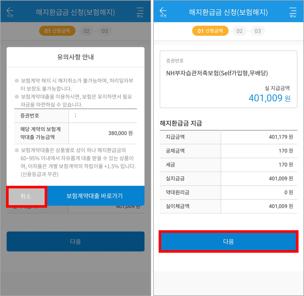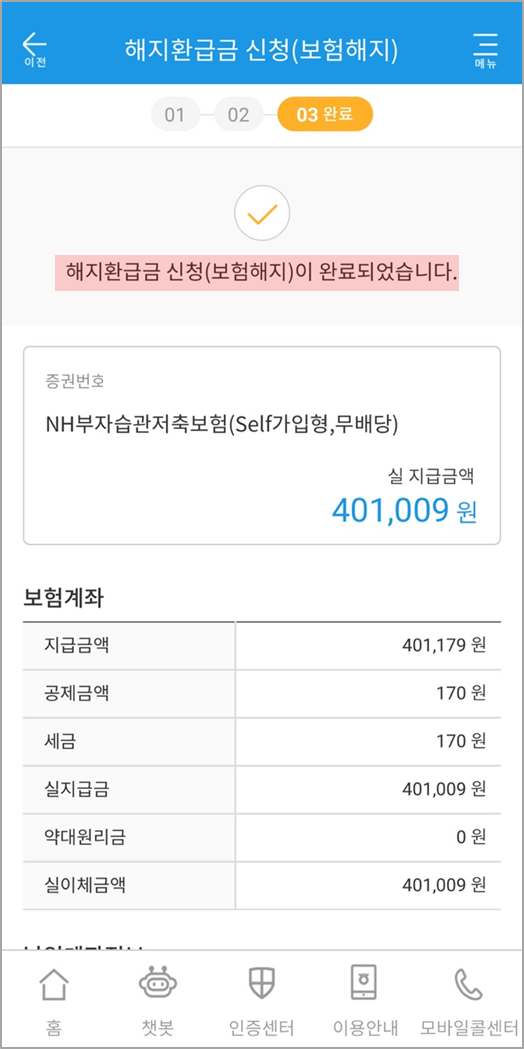-해지환급금은 신청하자마자 바로 입금 되었어요.