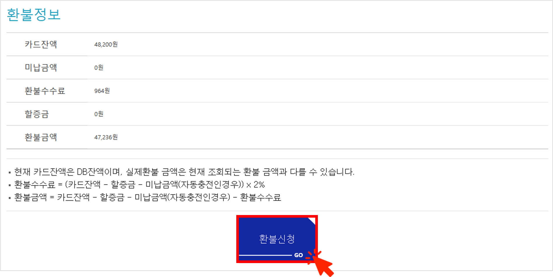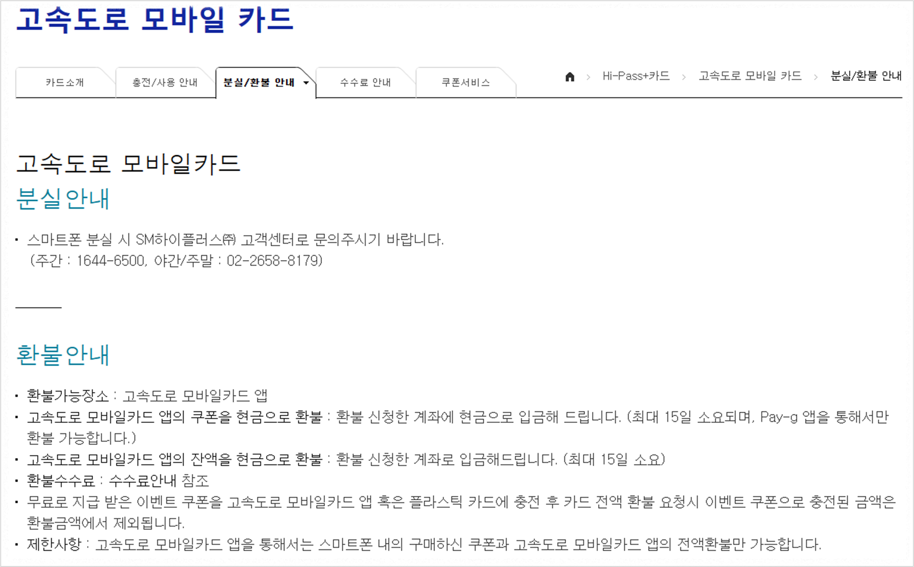 먼저 '하이플러스카드' 홈페이지에 나온 환불 안내사항입니다.