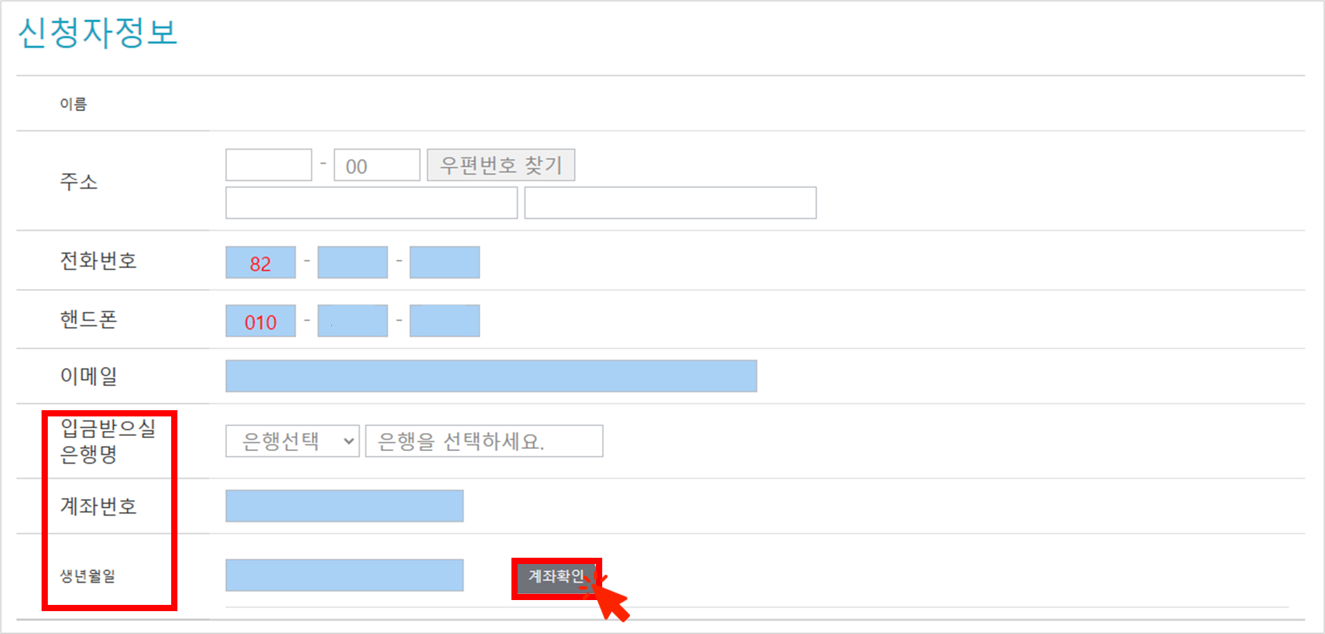 -환불 받을 본인 명의 입금 계좌 입력 후 계좌 확인 눌러주세요.