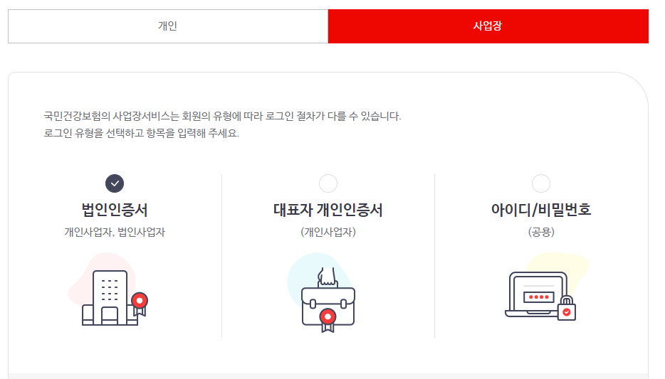 법인일 경우 법인인증서 또는 개인 사업자의 경우 개인 인증서가 있어야합니다.!!