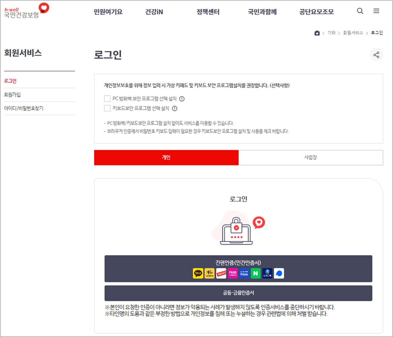1. 국민건강보험 홈페이지 로그인