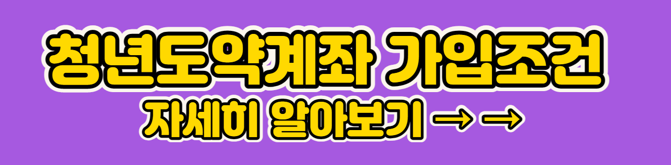 쳥년도약계좌 가입조건은 만19세~34세 청년 중 개인소득 6천만원 이하, 가구소득 중위 180% 이하에 해당하는경우 가입 가능합니다. 단 병역을 이행한 경우 병역이행기간 최대 6년은 연령 계산시 제외되며 직전 3개 연도 중 1회 이상 금융소득 2,00만원 초과 발생시 가입이 불가합니다.