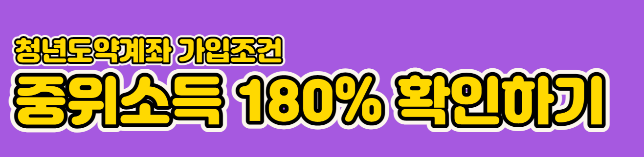 가구별 인원에 따라 중위소득은 달라집니다. 청년도약계좌 가입조건 중위 소득 180%이하인지 꼭 확인하시기 바랍니다.