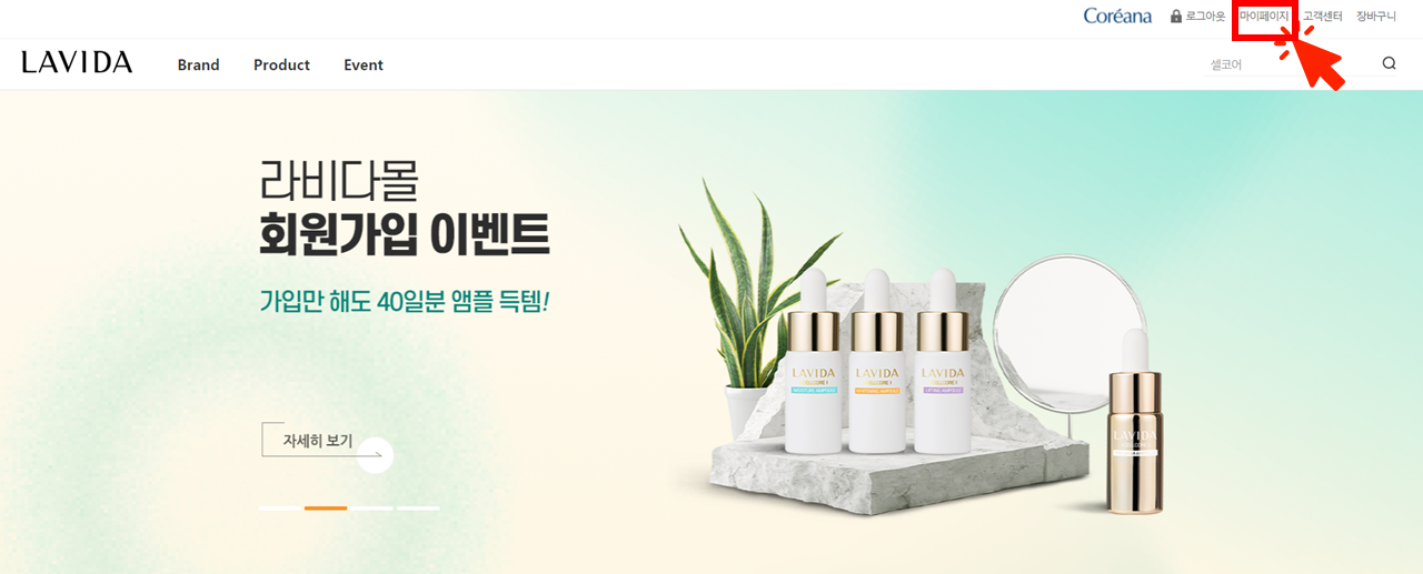 -회원가입 완료 후 로그인 해 우측 상단의 '마이페이지' 들어가주세요.