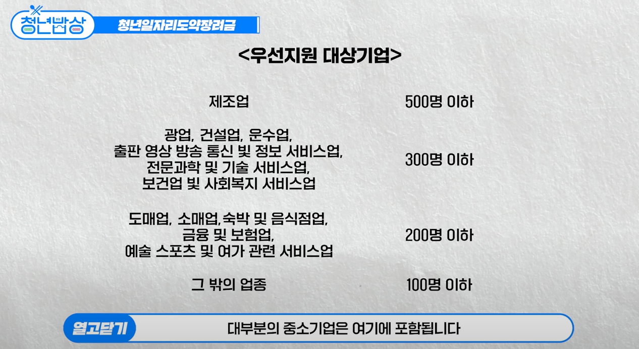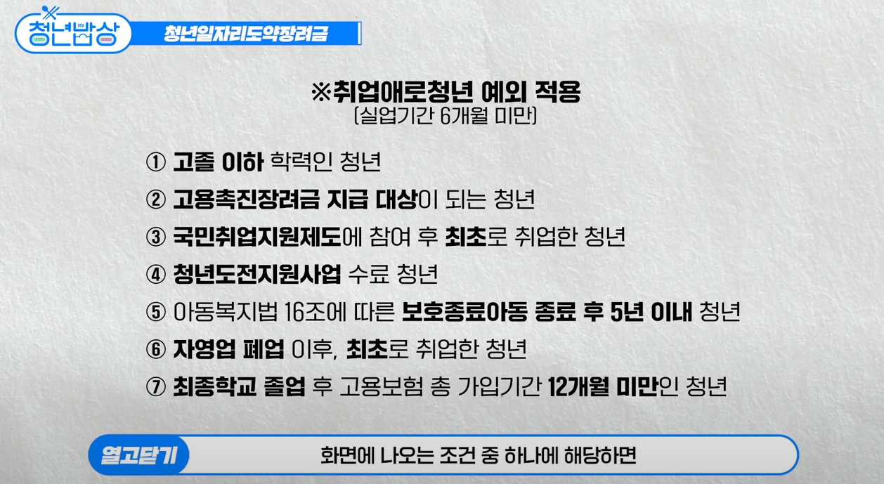 청년 일자리 도약 장려금 지원 대상