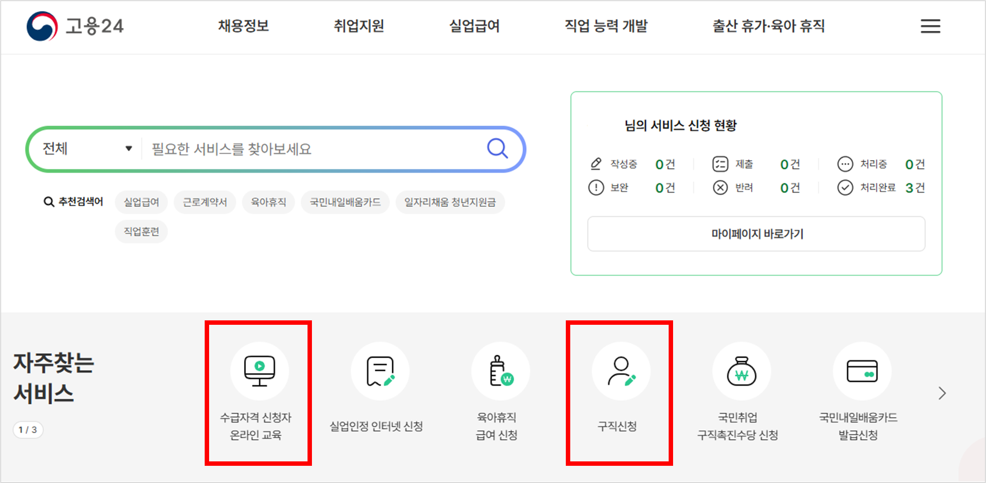3. 구직신청& 온라인교육 듣기