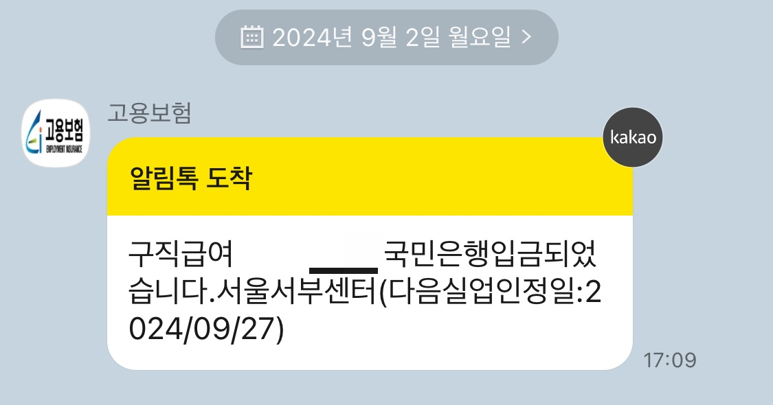저는 8/30(금) 교육 후 9/2(월) 오전에 1회차 실업급여가 들어왔어요~