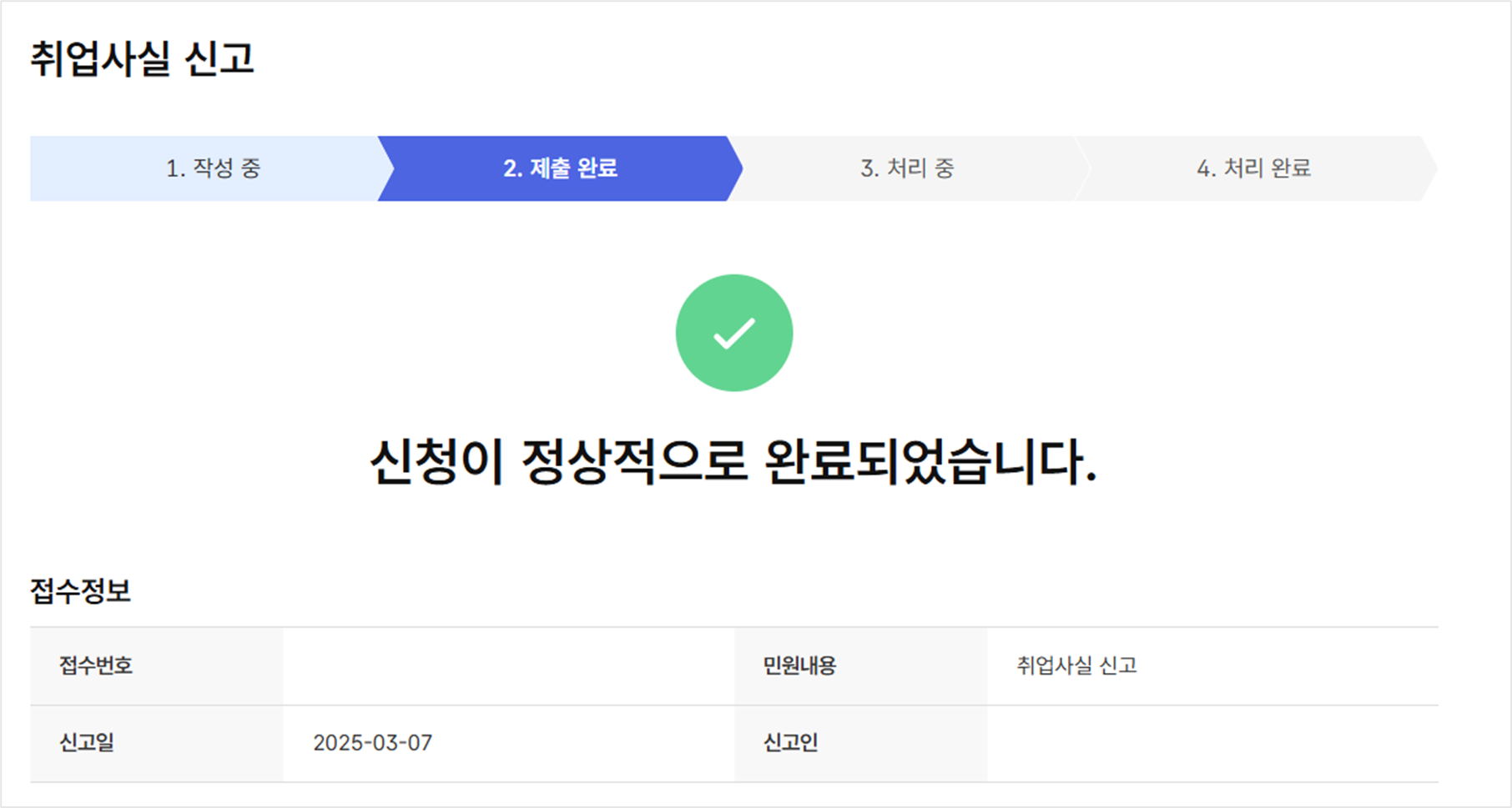 좌측 실업급여 메뉴에서 '취업사실 신고' 눌러주세요.