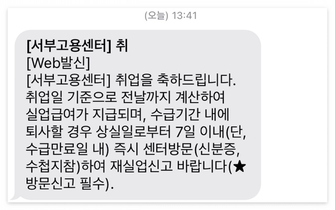 오전에 신고했더니 오후에 취업신고 되었다고 문자받았습니다. 취업일 전일까지 실업급여가 나온다고 하네요^^