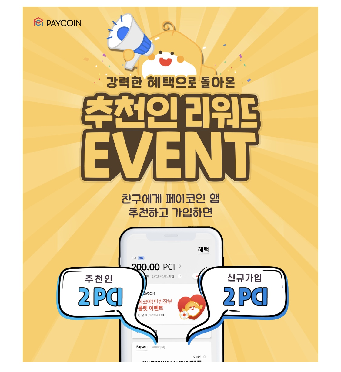 근데 페이코인 회원가입시 추천인 리워드를 입력하면 2PCI(약 1,400원)을 줘요.