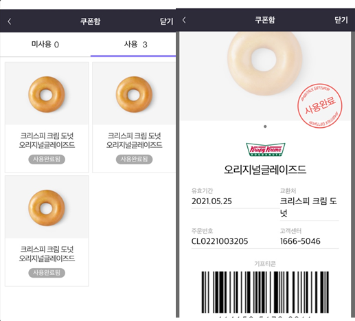 전 떄마침 크리스피 크림 도넛에 갈 일이 생겨 현장에서 바로 포인트를 도넛 쿠폰으로 3장 교환해서