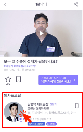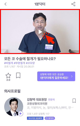 총 3개의 1분닥터 영상이 보이는데 아무거나 눌러서 들어가시면 됩니다.