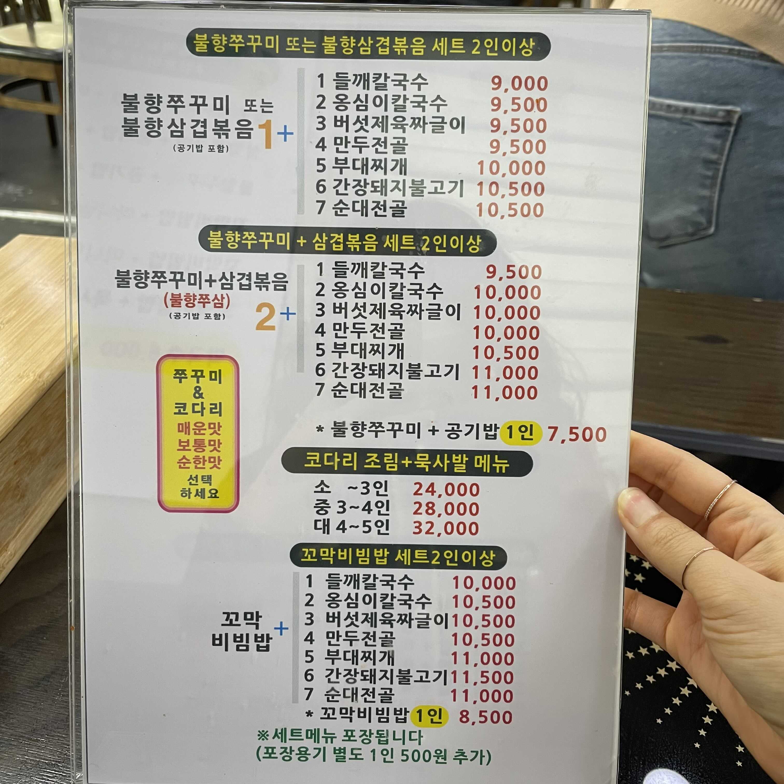 저는 제일 기본인 불향쭈꾸미+들깨칼국수 시켰어요!