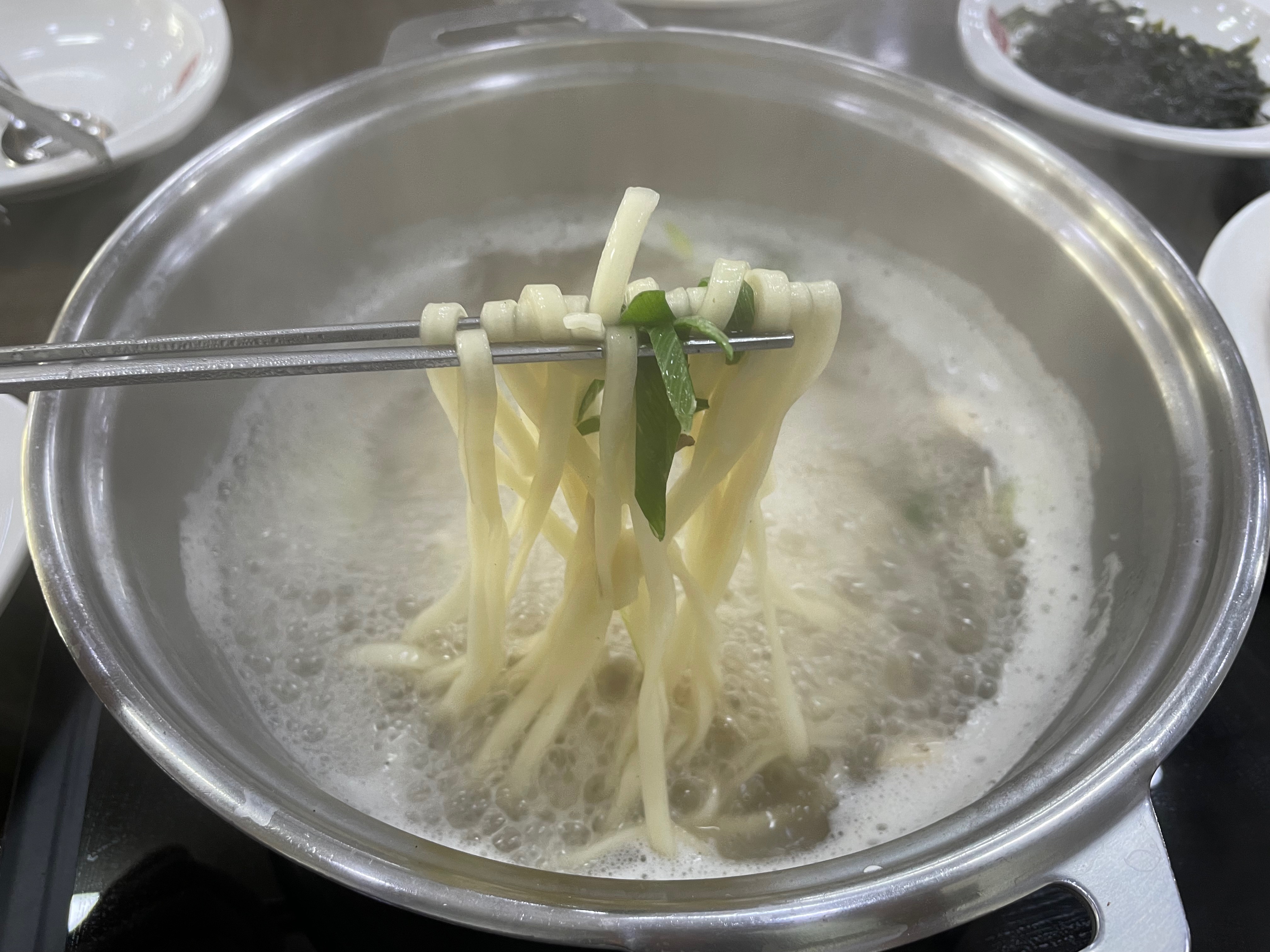 저희는 들깨칼국수 세트를 시켜먹었는데 옆 테이블을 보니 부대찌개도 많이들 시켜드시더라구요.