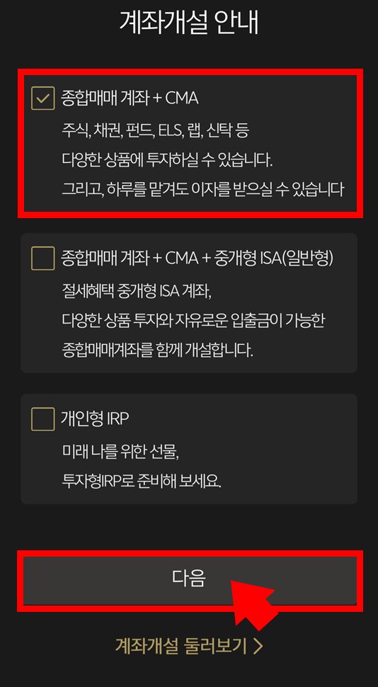 4. 개설할 계좌 선택하기