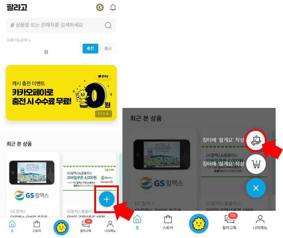 2. 하단 '+' 클릭 → '팔게요' 클릭