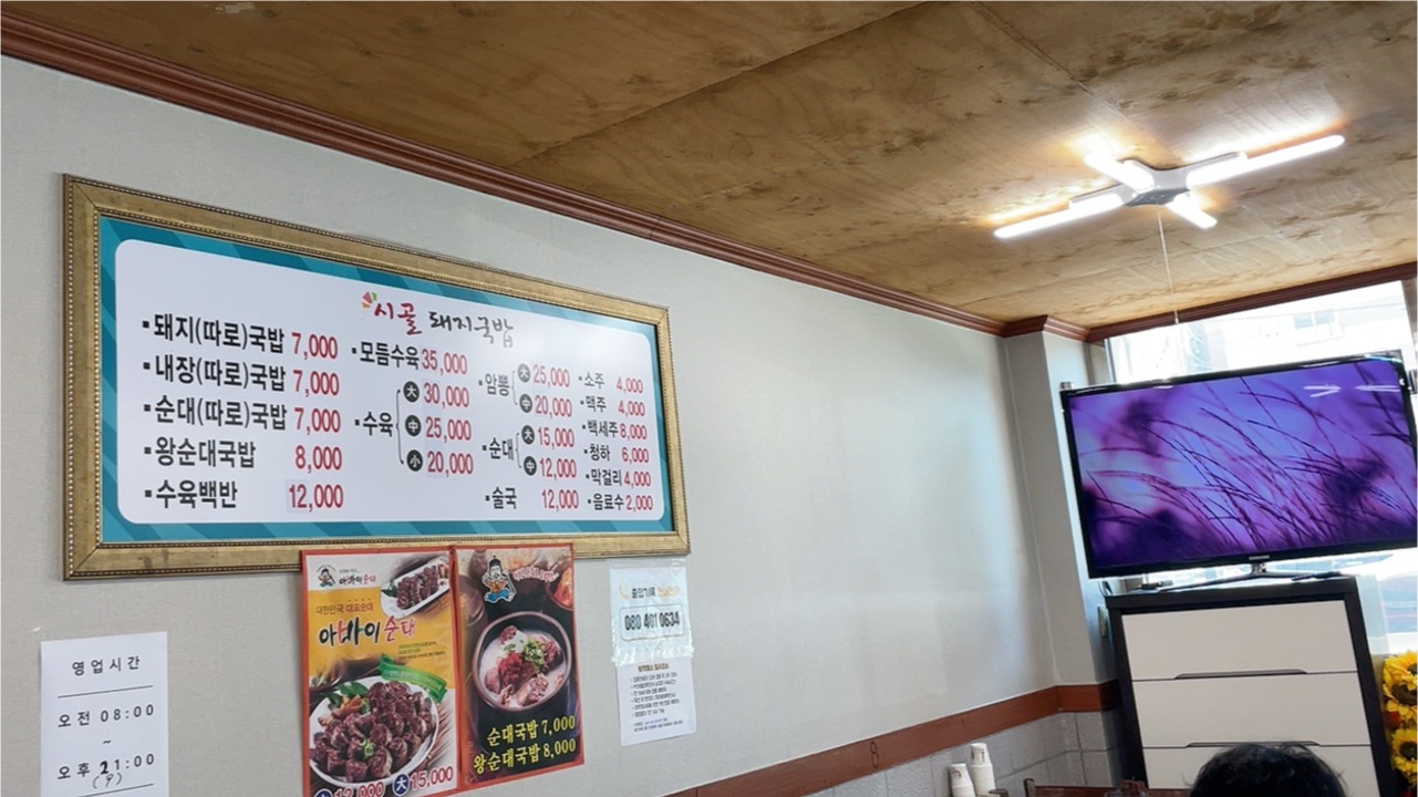 '시골돼지국밥' 메뉴판