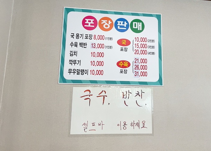 국밥은 포장시 천원 추가되네요.