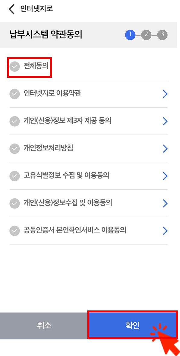 -납부시스템 약관 확인 후 동의 버튼 눌러주세요.