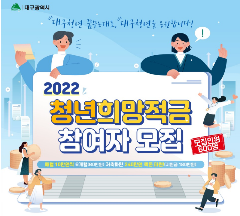 대구시에서 매월 30만원씩 총 180만원을 적립하여 240만원 마련 지원