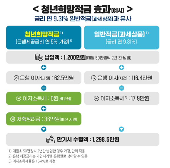 *매월 50만원씩 2년간 납입할 경우 최대 36만원 저축장려금 받을 수 있음