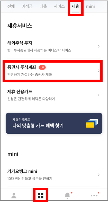 -카카오뱅크 앱 하단의 두번째 도형 눌러주세요.
