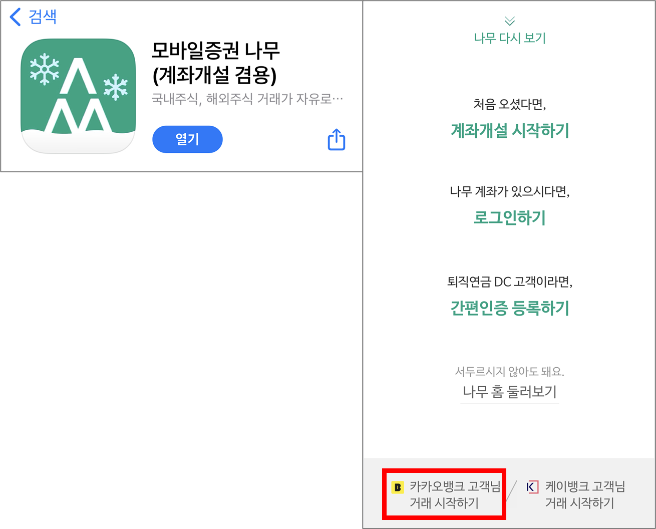 - 카카오뱅크 제휴로 만든 NH투자증권 주식 계좌는 거래앱인 나무 다운받으셔서