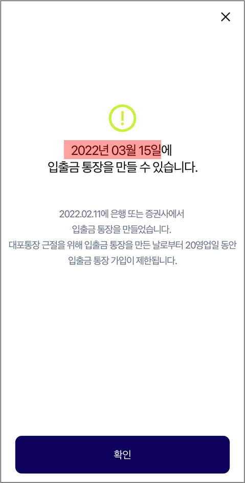 - 계좌 개설 가능한 날짜 확인해주면 됩니다.