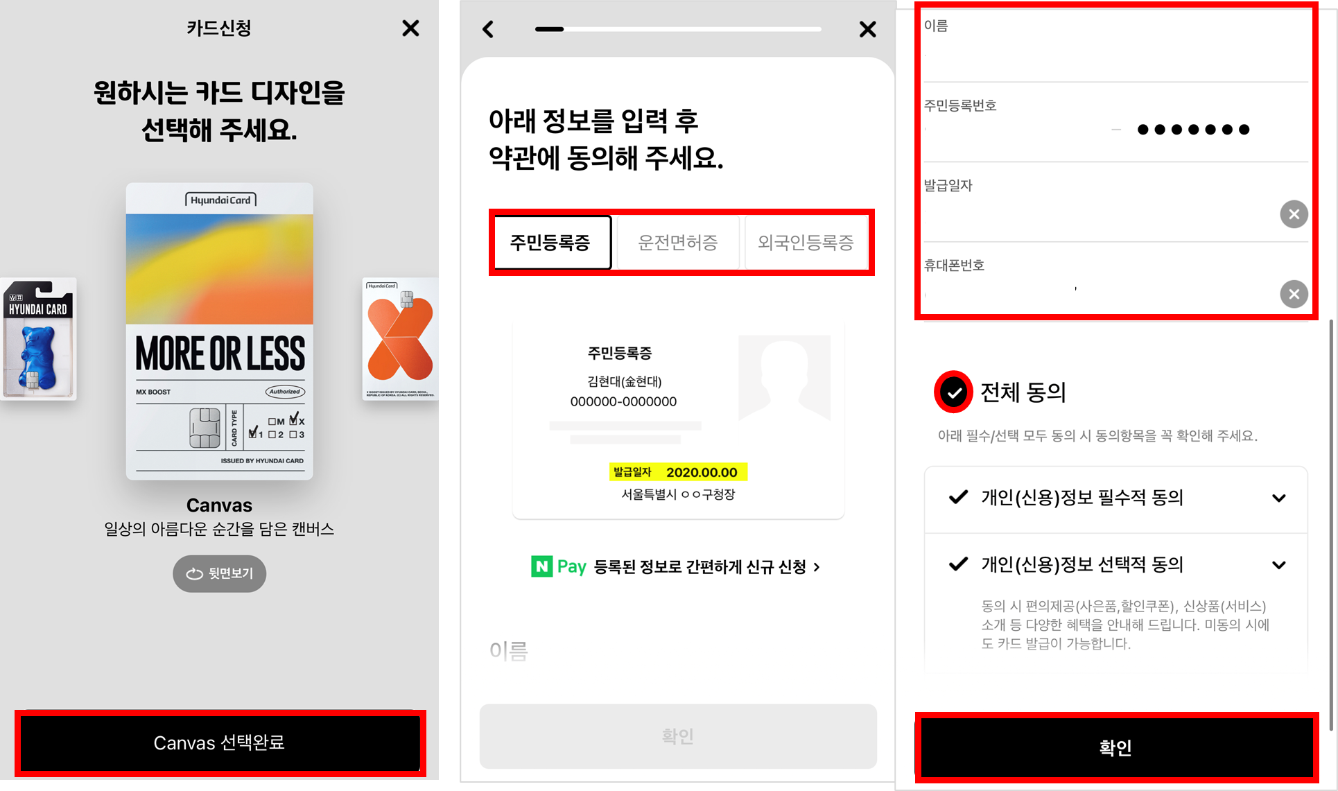 -원하는 카드 디자인 선택 후 신분증(주민등록증, 운전면허증, 외국인등록증) 인증해줍니다.