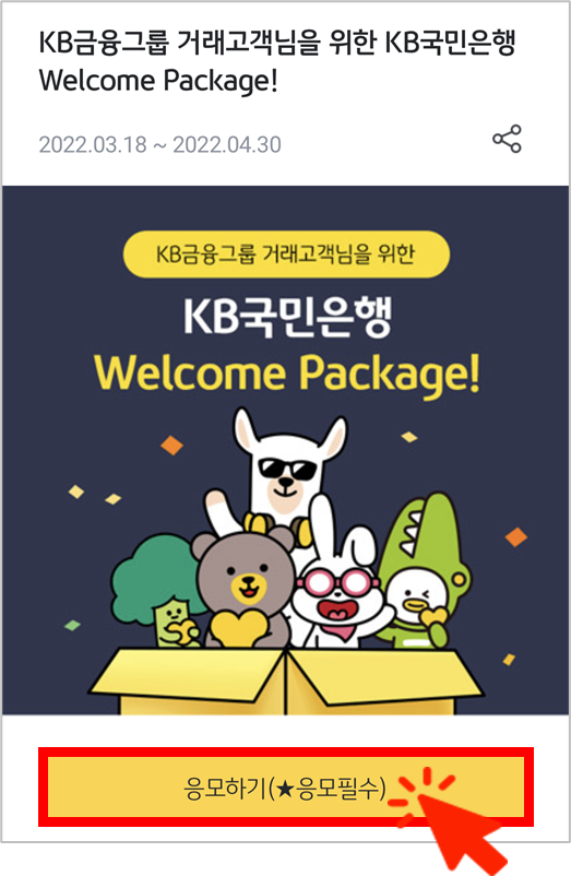 이벤트는 4.4(월), 5.9.(월) 발표가 나며 당첨 확인은 kb스타뱅킹-생활/혜택-이벤트-응모/당첨확인으로 해주시면 됩니다.