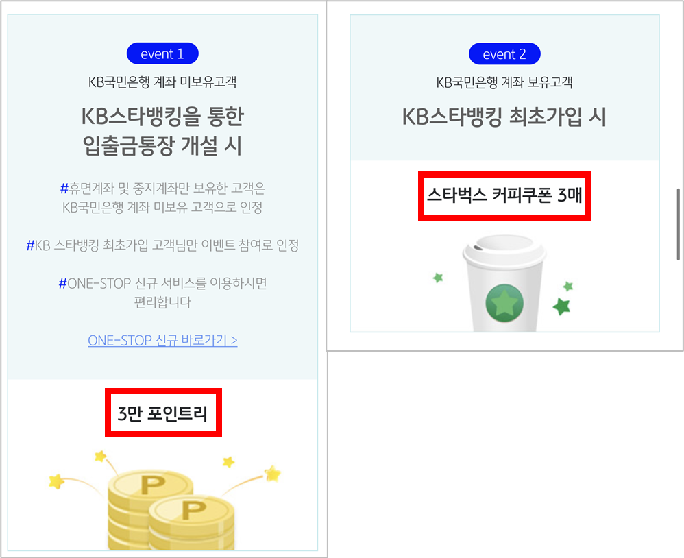 오늘은 KB국민은행 계좌 개설하고 3만 포인트리(현금화 가능), 스타벅스 커피쿠폰 3잔 받는 방법 알려드릴게요~